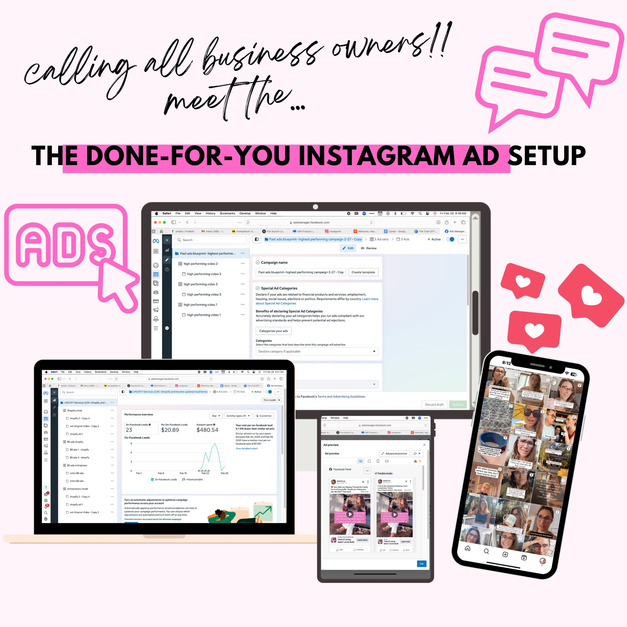 That means if you’re relying only on reels or stories, you’re leaving potential customers on the table.The businesses that grow in 2025 are the ones using ads (even small-budget ones, like these) to stay visible and top of mind. With Done-For-You Ad Setup, you won’t waste money figuring it out and you won’t have to spend thousands of dollars on a course.